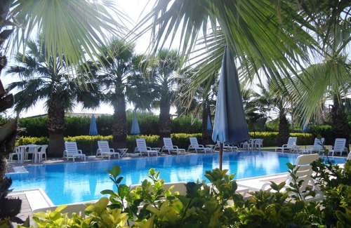 3 stars, reception, bar, coffee shop and internet (WLAN). LocationMarina di Ascea, district Velia. The holiday apartement is located in a holiday complex, on a 4000 sqm enclosed garden plot with flowers and trees, bordered by a fence and a hedce. The apartment has a large double balcony overlooking the pool and the Norman castle, one of which is equipped with table, chairs and clothesline. Access is via a side road (asphalted). Parking is available on the property. Specialair conditioning. Cold/hot air conditioning (individually adjustable)Facilities: baby cot, high chair and internet access (WLAN). TV reception takes place via satellite. TV channels only in local language. PoolAll pools are available for shared use. Outdoor pool (6.5 m x 15 m). Dogsnot allowed. DistancesShopping 150 m, restaurant 350 m, town center 1500 m. We are located in the heart of the Cilento National Park just 300 meters away. away from one of the most beautiful sandy beaches (soft and golden, 5 kilometers long) on the Cilento coast and a few steps from what was one of the most renowned cities of Magna Graecia, home of Parmenides and Zeno: Elea-Velia In summer: Bathing possibility 550 m in Marina di Ascea (beach 550 m in Marina di Ascea featuring sand). DivisionHoliday apartment, 1 floor, 3 rooms (including 2 bedrooms), 60 sqm, in total 5 beds (including 1 additional bed). RoomThe entrance to your holiday apartment is located on different floors and leads over an internal staircase. Bedroom with 2 single beds. Bedroom with 1 double bed and access to the balcony (covered). Living/bedroom with 1 additional bed on couch/sofa, sitting area, TV and access to the balcony (covered, garden furniture, 1 table, 6 chairs). Cooking nook in the living & bedroom with dining area (6 seats), electric stove (induction stove, 2 plates), fridge (icebox), microwave, coffee machine and access to the balcony. Bathroom with shower, 1 washbasin, WC, bidet, hairdryer and window. BoardBreakfast in buffet form. in buffet form. Terms of lease and pricesIncluded in the priceOutdoor pool, air conditioning, parking place, electricity, gas, water, final cleaning, breakfast, pool, sunloungers at the pool, cleaning (daily), Bed linen (weekly change), hand towels (daily change), Wireless Internet access. Side costs-Costs on the spot:/Obligatory:final cleaning of the kitchen (if not performed by the tenant) 30 € per object per stay. dish towels to bring along. local tax by local tariff (if charged).On request:washing machine 5 € per stage of washing programme based on usage. bed linen 6 € per person per change. parking place (additionally) 5 € per car per day.Deposit:EUR 150,-/object