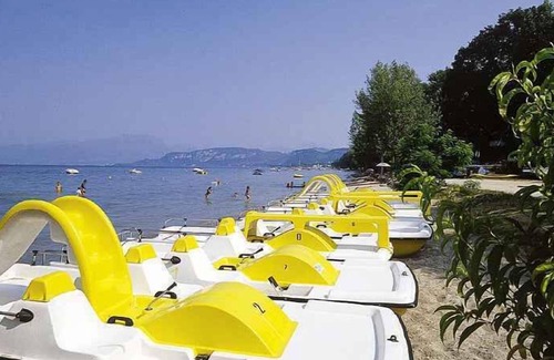 The holiday apartment is located in an apartment house and is functional and in the typical country style furnished. The property is located in a residence. The domicile is also popular because of the quiet and sunny location. For use are available: sunbathing area, parasol, sun lounger, children's playground, grill possibility and garden furniture.Holiday resort24 accommodations, reception, internet (WLAN) and laundry. WiFi only available in the reception area. LocationLazise. The holiday apartement is located in a residence, on a closed garden plot with meadow, flowers and trees, limited by a fence. The access goes via a side road (asphalted). Parking lot (for 1 car) on the property. Specialair conditioner, central heating. Facilities: internet access (WLAN). TV reception takes place via satellite. PoolOutdoor pool. Children's pool. LeisureIn the complex: bike rental. Dogsnot allowed. DistancesShopping opportunity 840 m, restaurant 300 m, town center 1000 m. Lazise: bank 1,6 km, discotheque 3,8 km, doctor 450 m and pharmacy 850 m. railway station in Peschiera del Garda 12,5 km. airport in Verona Valerio Catullo 21,2 km.In summer: Lago di Garda 1500 m in Lazise (beach 1,8 km in Lazise with gravel, stones and rocks). tennis in Bardolino 7,1 km. Lazise: water sports 2,1 km and mini golf 2,2 km. diving in Peschiera del Garda 7,6 km. DivisionHoliday apartment, 1 floor, 2 rooms (including 1 bed rooms), 50 sqm, in total 4 beds (including 2 additional beds). Smoking is prohibited in the property. RoomThe entrance in your holiday apartment is located on the ground floor, is at ground level and leads directly in the living room / bedroom. Bedroom with 1 double bed. Living/bedroom with 2 extra beds on couch/sofa, TV, dining area (4 seats), access to the terrace (garden furniture) and safe. Cooking nook in the living room / bedroom with gas stove (3 flames), dishwasher, fridge and microwave. Bathroom with shower, 1 sink, WC, bidet and hairdryer. Credit cardsVisa, MasterCard. Terms of lease and pricesIncluded in the priceOutdoor pool, internet access, air conditioning, parking place, electricity, gas, water, heating, final cleaning, pool, bed linen (first usage), baby cot – please order at booking, hand towels (first usage), high chair - please order at booking, Wireless Internet access. Side costs-Costs on the spot:/Obligatory:final cleaning of the kitchen to be carried out individually. local tax by local tariff (if charged).On request:Interim cleaning 50 € per object based on usage. bed linen 9,50 € per person per change. hand towels 9,50 € per person per change. bathing towels 4 € per person per change. For a fee: bicycle.Deposit:EUR 100,-/object