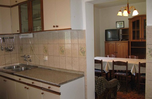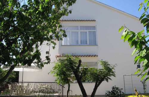 The holiday apartment is located in a townhouse and is functional furnished. The property is located on the outskirts. The domicile is also popular because of the sunny location. For common use are available: grill possibility and terrace. (Common terrace on the ground floor.)LocationRab. The holiday apartement is located on a open garden plot with trees. The landlord lives permanently in the house. The access goes via a side road (asphalted). Parking lot on the property. Specialair conditioner. (Each room has air conditioning.) Facilities: internet access (WLAN). TV reception takes place via satellite. Dogsallowed, EUR 5.00/pet per day. DistancesShopping opportunity 250 m, restaurant 20 m, town center 3 km. discotheque, cinema each 3 km in Banjol.In summer: Adriatic Sea 120 m in Banjol (beach 120 m in Banjol with gravel and bathing plateaus). Banjol: boat rental 200 m and tennis, diving each 3 km. DivisionHoliday apartment, 1 floor, 5 rooms (including 4 bed rooms), 100 sqm, in total 11 beds (including 3 additional beds). RoomThe entrance in your holiday apartment is located on the 1st floor and is at ground level. Eat-in kitchen with TV and dining area. Bedroom with 1 double bed, 1 additional bed, access to the balcony (4 sqm, garden furniture) and with bathroom ensuite. 2 bedrooms each with 1 double bed, 1 additional bed and access to the balcony (4 sqm, garden furniture). Bedroom with 1 double bed and with bathroom ensuite. Cooking nook in the eat-in kitchen with electric stove (4 plates), oven, extractor hood, fridge (icebox) and coffee machine. 2 bathrooms each with shower, WC and window. Bathroom with bathtub, 1 sink, WC, bidet and window. Terms of lease and pricesIncluded in the priceinternet access, registration fee, air conditioning, parking place, electricity, water, final cleaning, bed linen, hand towels, Wireless Internet access. Side costs-Additionally(Payable when booking)/local tax.Deposit:No deposit.