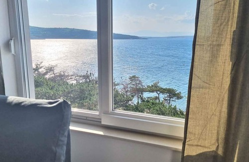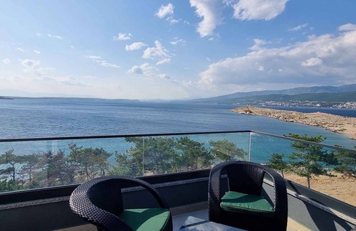 The holiday apartment is located in an apartment house and is furnished in a modern and luxury style. Also due to the view over the sea from the property the domicile is popular. Available for use: garden furniture.LocationŠilo. Parking (for 1 car) is available on the property. Specialair conditioning, central heating.Facilities: internet access (WLAN). TV reception takes place via satellite. PoolAll pools are available for shared use. Outdoor pool (usable from early May to early October, 4 m x 9 m, depth 1,40 m). Dogsnot allowed. DistancesShopping 1400 m, restaurant 60 m, town center 1000 m. In summer: Adriatic Sea 20 m in Šilo (beach 20 m in Šilo featuring rocks). DivisionHoliday apartment, 1 floor, 2 rooms (including 1 bedroom), 50 sqm, in total 2 beds. RoomThe entrance to your holiday apartment is located on the 2nd floor. Living room with sitting area, TV and access to the balcony (10 sqm). Bedroom with 1 double bed and TV. Kitchen with dining area, electric stove, dishwasher, fridge (icebox), microwave, coffee machine, toaster and electric kettle. Bathroom with with shower facility, shower, 1 washbasin, WC and hairdryer. Terms of lease and pricesIncluded in the priceOutdoor pool, dish towels, air conditioning, parking place, electricity, gas, water, final cleaning, bed linen, hand towels, Bed linen (weekly change), hand towels (weekly change), Wireless Internet access. Side costs-Costs on the spot:/Obligatory:registration fee 5 € per person per stay. local tax by local tariff.Deposit:No deposit.
