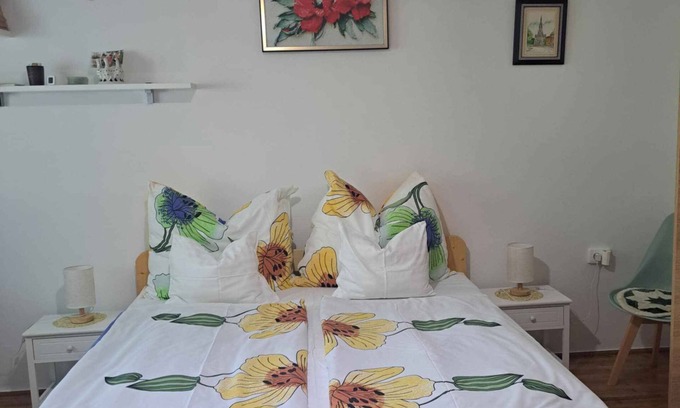 The holiday apartment is located in a single-family home built in 1992, was renovated in 2020 and is furnished in a functional style. Also due to its quiet location the domicile is popular. Available for shared use: parasol, barbecue facilities and garden furniture.LocationBük. The holiday apartement is located on a 850 sqm enclosed garden plot with meadow, flowers, shrubs and trees. The landlord lives permanently in the house, but uses a seperate entrance. Access is via a side road. Parking (for 1 car) is available on the property. Specialair conditioning, central heating (gas).Facilities: internet access (WLAN) and iron. TV reception takes place via satellite. Leisure2 bicycles. Dogsnot allowed. DistancesShopping 400 m, restaurant 400 m, town center 400 m. Bük: bank 2 km and railway station, doctor, pharmacy each 3 km. Bükfürdö: sauna 1500 m and thermal bath 1,8 km. airport in Schwechat-Wien 12,5 km. Railway line 3 km. Main road 300 m. Children's playground 5 km. In summer: tennis in Bük 200 m. Bükfürdö: mini golf 1000 m and golf 1500 m. fishing in Csepreg 8 km. horse riding in Zsira 13 km. DivisionHoliday apartment, 1 floor, 1 room (including 1 bedroom), 33 sqm, in total 2 beds. RoomThe entrance to your holiday apartment is at ground level and leads directly into the vestibule. There are 2 stairs in front of the entrance Bedroom with 1 double bed, TV, radio and dining area. Kitchenette with electric stove, oven, fridge, coffee machine and toaster. Bathroom with shower, 1 washbasin, WC, hairdryer and window. Terms of lease and pricesIncluded in the priceinternet access, bicycle, parking place, electricity, water, bed linen, Wireless Internet access. Side costs-Costs on the spot:/Obligatory:final cleaning 20 € per object per stay. local tax by local tariff.On request:Air conditioning - please order at booking 3 € per object per day.Deposit:No deposit.