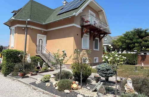 The holiday apartment is located in an apartment house and is furnished in a modern style. Also due to its quiet and sunny location the domicile is popular. Available for shared use: parasol, sun lounger, children's playground, swing, garden shower, barbecue facilities, pavilion, garden furniture and campfire site. Check sports and healing massages and reflexology massages.LocationGyenesdiás. The holiday apartement is located on a 200 sqm enclosed plot, bordered by a fence. The landlord lives permanently in the house, but uses a seperate entrance. A house you will find the apartment BAL GYE 046 (for 2-3 people) and BAL GYE 045 (for 4-5 people). This apartment is only rented to private individuals Parking (for 1 car) is available on the property. Specialair conditioning, central heating (gas).Facilities: internet access (WLAN) and safe. TV reception takes place via satellite.For your safety, the accommodation is equipped with smoke detector. PoolAll pools are available for shared use. Outdoor pool (usable from early May to mid September, heatable, 5.5 m x 8 m, depth 1,6 m). Water depth: 145 cm. Leisuretable tennis. Dogsnot allowed. DistancesShopping 400 m, restaurant 500 m, town center 500 m. Railway line 1000 m. Aldi, Lidl, Tesco and Spar 1500 m. In summer: Balaton 990 m in Gyenesdiás. Gyenesdiás: horse riding 1500 m and mini golf 800 m. McDonald's 1200 m. Post 2km. DivisionHoliday apartment, 1 floor, 2 rooms (including 2 bedrooms), 40 sqm, in total 4 beds. Room 2 bedrooms each with 1 double bed and access to the balcony (garden furniture). Kitchen with TV, dining area (4 seats), gas stove (4 flames), (4 plates), fridge, microwave, coffee machine, toaster and electric kettle. Bathroom with shower and WC. Terms of lease and pricesIncluded in the priceOutdoor pool, internet access, parking place, electricity, gas, water, final cleaning, bed linen, pool, sunloungers. Side costs-Costs on the spot:/Obligatory:local tax by local tariff.On request:air conditioning 5 € per object per day.Deposit:EUR 150,-/object