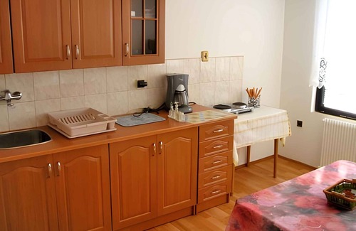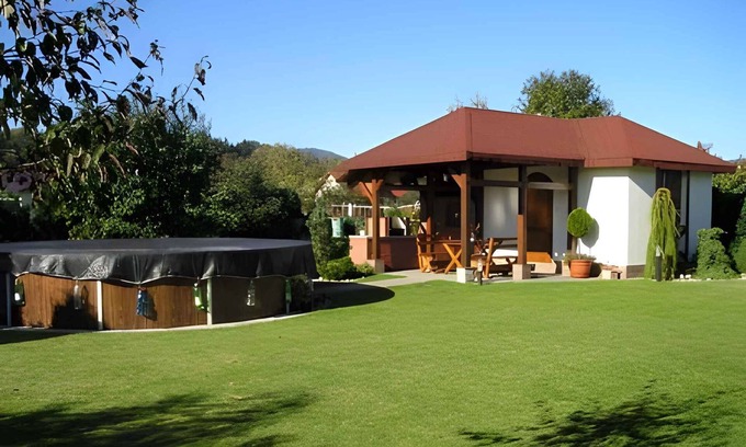The holiday apartment is located in a detached house. The property is located in a residential area. The domicile is also popular because of the quiet location. For use are available: grill possibility, pavilion and garden furniture.LocationVrchlabí, 466 m above sea level. The holiday apartement is located on a closed plot, limited by a fence. The landlord lives permanently in the house. The access goes via a path (asphalted). Parking lot (for 1 car) on the property. Specialcentral heating. TV reception takes place via satellite. PoolOutdoor pool (diameter 5.5 m, depth 1 m, for common use). Dogsnot allowed. DistancesShopping opportunity 500 m, restaurant 500 m. discotheque in Vrchlabí 3 km. City center with its historic market square, bars, restaurants, shopping, bowling 3 km. Spindleruv Mlyn with aqua park 20 km away.In summer: swimming pond 3 km in Vrchlabí. golf in Mladé Buky 25 km. tennis in Vrchlabí 3 km. Summer toboggan run 20 km away.In the winter: Ski area 12 km in Spindleruv Mlyn (Skigebiet Herlikovice-Bubakov). trail in Spindleruv Mlyn 5 km. Skiing area 7 km away. Spindleruv Mlyn ski resort 20 km away. DivisionHoliday apartment, 1 floor, 2 rooms (including 1 bed rooms), 55 sqm, in total 4 beds. RoomSeparate entrance. Living room with sitting area and TV. Bedroom with 2 double beds. Kitchen with dining area, electric stove (2 plates), fridge, microwave, coffee machine, toaster and electric kettle. Bathroom with shower, 1 sink and WC. Terms of lease and pricesIncluded in the priceOutdoor pool, parking place, electricity, gas, water, final cleaning, bed linen. Side costs-Costs on the spot:/Obligatory:heating material (wood/coal) 80 € per cubic meter based on usage. hand towels to bring along. local tax by local tariff.Deposit:CZK 2.000,-/object