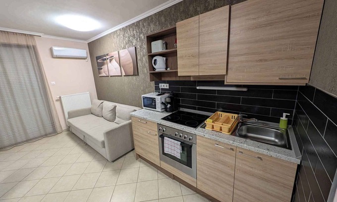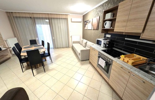 The holiday apartment is located in an apartment house, was renovated in 2024 and is furnished in a modern style. The property is located in a busy environment, in a holiday home area. Also due to its sunny location at the water the domicile is popular. Available for shared use: sunbathing lawn, sun lounger and garden furniture.LocationSiofok. The holiday apartement is located on a enclosed garden plot, bordered by a fence. The landlord does not live in the house or on the property. Access is via a side road (asphalted). Parking (for 1 car) is available in a carport. Specialair conditioning, central heating.Facilities: internet access (WLAN). TV reception takes place via electric wire. has hypoallergenic pillows.For your safety, the accommodation is equipped with smoke detector. PoolAll pools are available for shared use. Outdoor pool (usable from early May to early September, 4 m x 6 m, depth 1 m). Dogsnot allowed. DistancesShopping 10 m, restaurant 40 m, town center 500 m. In summer: Balaton 100 m in Balaton (beach 100 m in Balaton featuring meadow). Central beach with children's pool, children's playground and sports facilities. DivisionHoliday apartment, 1 floor, 2 rooms (including 1 bedroom), 44 sqm, in total 6 beds (including 4 additional beds). RoomThe entrance to your holiday apartment is located on the 1st floor