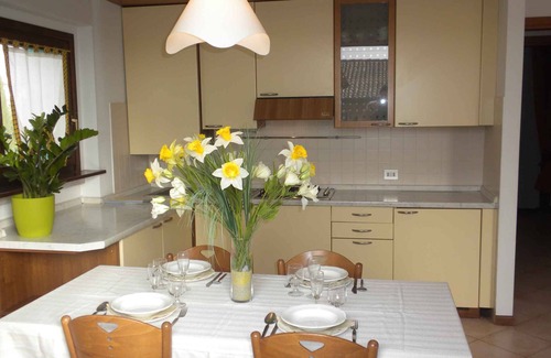 The holiday apartment built in 1995 and is furnished in a modern style. The property is located in a residence, on the outskirts. Also due to the view over the lake from the property and its quiet and sunny location the domicile is popular. Available for use: sun lounger and barbecue facilities.LocationLazise, 80 m above sea level. The holiday apartement is located in a residence. Parking is available in a garage. Specialair conditioning.Facilities: internet access (WLAN) and washing machine. TV reception takes place via satellite.For your safety, the accommodation is equipped with CO2 detector and fire extinguisher. PoolAll pools are available for shared use. Outdoor pool (usable from mid May to mid September, 6 m x 14 m, depth 1,5 m). Pool is open from Mid May until Mid September. No sun lounger nor beach umbrellas available at pool. 2 sunchairs available in each apartment. Dogsallowed, EUR 25.00/pet per stay. DistancesShopping 600 m, restaurant 600 m, town center 450 m. In summer: Lake Garda (beach 600 m in Laz featuring gravel and rocks). DivisionHoliday apartment, 1 floor, 3 rooms (including 2 bedrooms), 60 sqm, in total 5 beds (including 1 additional bed), on request additionally 1 child up to 2 years in a baby cot. RoomThe entrance to your holiday apartment is located on the 1st floor