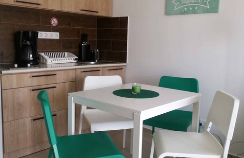 The holiday apartment is located in an apartment house and is modern furnished. The property is located in a holiday home area. The domicile is also popular because of the sunny location. For exclusive use are available: grill possibility, terrace, garden furniture and lift.LocationSiofok. The holiday apartement is located on a closed plot, limited by a fence. The landlord does not live in the house or on the property. The access goes via a side road (asphalted). Parking lot (for 1 car) on the property. Specialair conditioner, central heating (gas). Apartment with air conditioning Facilities: internet access (WLAN) and dryer. TV reception takes place via electric wire. PoolIndoor swimming pool (heatable, 8 m x 4 m, depth 1,4 m, usable from the beginning of January to the end of December, for common use). WellnessSauna. Dogsnot allowed. DistancesShopping opportunity 100 m, restaurant 100 m, town center 400 m.In summer: Balaton 100 m in Siofok (beach 100 m in Siofok with meadow and sand). water sports in Siofok 400 m. Beach promenade with bars, shops and discos 70 m. Giant Edge and Beach nearby. DivisionHoliday apartment, 1 floor, 2 rooms (including 1 bed rooms), 33 sqm, in total 4 beds. RoomThe entrance in your holiday apartment leads over an internal staircase directly in the living room / bedroom. With elevator. Bedroom with 1 double bed. Living/bedroom with 2 extra beds on double sofa bed, TV, dining area and access to the balcony (12 sqm, garden furniture). American kitchen with electric stove, fridge (icebox), microwave and coffee machine. Bathroom with bathtub with shower facility, 1 sink and WC. Terms of lease and pricesIncluded in the priceIndoor pool, air conditioning, parking place, electricity, water, bed linen, pool, Wireless Internet access. Side costs-Costs on the spot:/Obligatory:final cleaning 30 € per object per stay. local tax by local tariff.On request:sauna 3 € all inclusive per time of usage. Infra Sauna 3 € all inclusive per time of usage.Deposit:EUR 150,-/object
