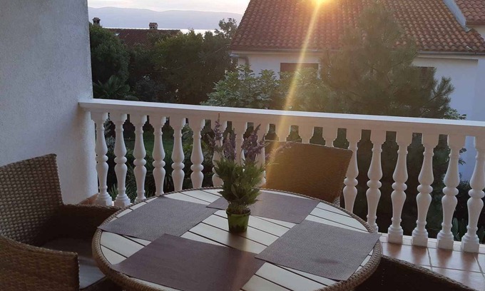The holiday apartment is located in an apartment house and is furnished in a functional style. The property is located in a residential area, on the outskirts. Also due to the view over the sea from the property and its quiet and sunny location the domicile is popular. Available for shared use: barbecue facilities, terrace and garden furniture.LocationNjivice. The holiday apartement is located on a enclosed garden plot with flowers, shrubs and trees. The landlord lives permanently in the house. Access is via a side road (asphalted). Parking is available on the property. Specialair conditioning.Facilities: internet access (WLAN). TV reception takes place via satellite. Dogsallowed, EUR 9.00/pet per day. DistancesShopping 800 m, restaurant 900 m, town center 800 m. doctor in Krk 18 km. Malinska: bank 5 km and railway station, discotheque each 6 km. pharmacy in Njivice 1300 m. airport in Omisalj 11 km. cinema in Rijeka 34 km. Children's playground 500 m. Playground 500 m, 1100 m Bunjee children, city of Krk 16 km, 20 km Biserujka, Aquarius 35 km, 35 Rijeka km, 50 km Opatija