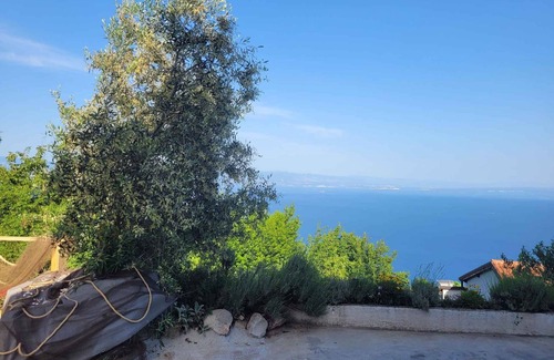 The holiday apartment is located in a detached single-family home and is furnished in a modern style. The property is located on the outskirts. Also due to the view over the sea from the property and its quiet and sunny hillside location the domicile is popular. Available for your exclusive use: barbecue facilities and terrace.LocationLiganj. The holiday apartement is located on a enclosed garden plot with flowers and shrubs, bordered by a fence. The landlord lives permanently in the house, but uses a seperate entrance. Access is via a path (asphalted). Parking is available on the property. SpecialFacilities: baby cot and internet access (WLAN). TV reception takes place via satellite. Dogsallowed, EUR 5.00/pet per day. DistancesShopping 200 m, restaurant 3 km, town center 3 km. airport in Krk 55 km. indoor swimming pool, sauna, discotheque, cinema, doctor, pharmacy, bank each 3 km in Lovran. thermal bath in Opatija 7 km. Children's playground 200 m. In summer: Adriatic Sea 3 km in Lovran (beach 3 km in Lovran featuring gravel, stones, rocks and bathing plateaus). dog beach in Ika 3 km. Lovran: tennis, fishing, diving, water sports, boat rental, boat launch each 3 km. horse riding 5 km. mini golf in Medveja 5 km. DivisionHoliday apartment, 1 floor, 2 rooms (including 1 bedroom), 45 sqm, in total 4 beds (including 2 additional beds), plus 1 baby cot. RoomThe entrance to your holiday apartment is located on the ground floor, is at ground level and leads over the terrace directly into the living & bedroom. Living/bedroom with 2 additional beds on double sofa bed, sitting area, TV, dining area (4 seats) and access to the terrace (6 sqm, covered, garden furniture, 1 table, 4 chairs). Cooking nook in the living & bedroom with TV, electric stove (ceramic hob, 4 plates), oven, extractor hood, fridge (icebox), coffee machine, toaster, electric kettle and access to the terrace. Bathroom with shower, WC and hairdryer. Bedroom with 1 double bed and 1 baby cot. Terms of lease and pricesIncluded in the pricebabycot, internet access, registration fee, baby cot, parking place, final cleaning, bed linen, hand towels, Wireless Internet access. Side costs-Costs on the spot:/Obligatory:Additional charges for water, electricity and gas per object per week. local tax by local tariff.Deposit:EUR 50,-/object.