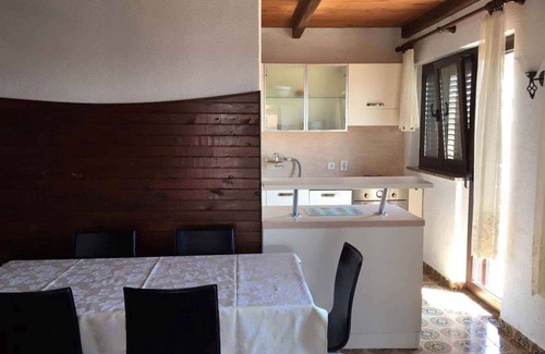The holiday apartment is located in an apartment house and is furnished in a modern style. The property is located on the outskirts. Also due to its quiet and sunny location the domicile is popular. Available for shared use: parasol, children's playground, swing, barbecue facilities and garden furniture. Hammock.LocationPunat. The holiday apartement is located on a 850 sqm enclosed garden plot with meadow, flowers and shrubs. The landlord lives in a separate building on the property. Holiday KRK PUN 001 (4 persons) located in the same building. Access is via a side road. Parking (for 4 cars) is available on the property. Specialair conditioning.Facilities: internet access (WLAN) and safe. TV reception takes place via satellite. PoolAll pools are available for shared use. Outdoor pool (usable from early May to early October, 4 m x 8 m, depth 1.55 m). Dogsallowed, EUR 6.00/pet per day. DistancesShopping 300 m, restaurant 300 m, town center 300 m. indoor swimming pool, sauna, discotheque each 6 km in Krk. airport in Rijeka 23 km. Airport and Case Biserujka 30 km away. In summer: Adriatic Sea 300 m in Punat (beach 300 m in Punat featuring gravel, rocks and bathing plateaus). tennis in Krk 1000 m. Punat: mini golf, boat rental, boat launch each 300 m. diving 500 m. Nudist beach 1000 m. Trails, aquagun 500 m. Water ski lift 2.5 km away. DivisionHoliday apartment, 1 floor, 3 rooms (including 2 bedrooms), 100 sqm, in total 4 beds. RoomThe entrance to your holiday apartment is located on the 1st floor