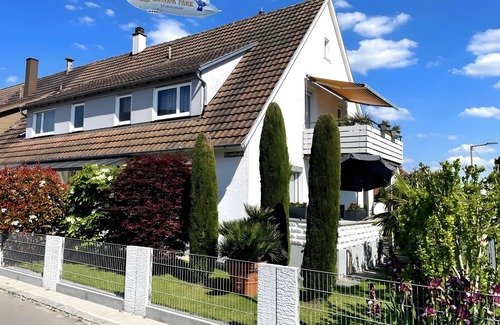 Our apartments are located on the outskirts of Friedrichshafen, right next to the Friedrichshafen Exhibition Center. The city center is about 2.5 km away. The Zeppelin city of Friedrichshafen offers many excursion destinations. Visit the Zeppelin Museum or book a sightseeing flight over Lake Constance. Of course you can also explore the surroundings on the ground, use the numerous cycle paths with a well-developed network of paths. Unfortunately, pets are not allowed. Each apartment has a parking space. Storage facilities for your bicycles are available at the house. Children in their parents' bed or in a travel cot brought along are free of charge up to the age of 2.