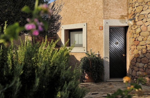 L’Ea di Lavru is a delightful small holiday complex consisting of 11 apartments. It is located only a few minutes from the most enchanting beaches on the coast, facing the spectacular panorama of Tavolara island, which appears as an imposing dolomite rock suspended in the gulf among the amazing turquoise of the sky and the sea. The apartments, which definitely stand out from the area standards, differ from each other in terms of position, size, articulation of spaces and interior design. Delicious verandas and terraces, surrounded by colourful flowers, allow to pleasantly use the outdoor spaces and enjoy the spectacular panorama of the gulf. The designer artistically distributed the accommodations in three harmonious groups of villas, between an alternation of small areas of Mediterranean scrub, rocks with warm shades of pink granite and delicious, extensive flower beds.