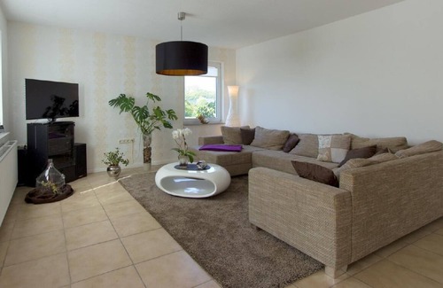 Brief description Miscellaneous : Non-smoking houseGarden and outdoor facilitiesGarden equipment : BarbecueFurnishedFireplace, gas central heating, hot water via instantaneous water heater, stepless accessSpacious shower, dishwasher LED TV Stove 4 plates Ceran ovenToaster Coffee machine Kettle terrace Garden, 1x car parking space, barbecue Outside: Garden available; Barbecue; Total car parking spaces: 1; Private parking; Terrace;General: Bathroom: 1; Plot size: 470 sqm; Bedroom; Living: Internet; Satellite TV; TV; Bath/WC: shower; Toilet; Cooking: Oven; Stove; Coffee machine; Refrigerator; Dishwasher; Other: View; Heating; Internet included; Non-smoking property; Distances (as the crow flies, approx.): Distance to cafés/ restaurants: 0.90 km; Distance to lake: 0.90 km; Distance to airport: 120.00 km; Distance to sea: 80.00 km; Brief description Other : Non-smoking house