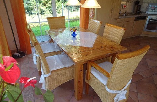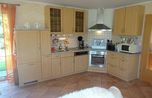 The holiday home is surrounded by a magnificent 1000 square metre fenced garden. You can enjoy a wonderful distant view of the forest and the mountains of the Vogtland.