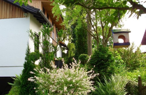 Our cosy, country-style, 66 sqm flat with its generous floor-to-ceiling windows and a relaxing view of the garden, as well as a view of the Eisenberg and Upland, is located in a quiet cul-de-sac on the outskirts of the village.