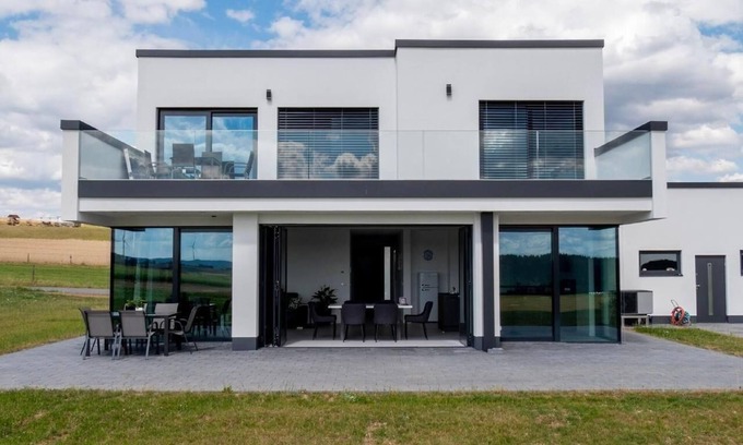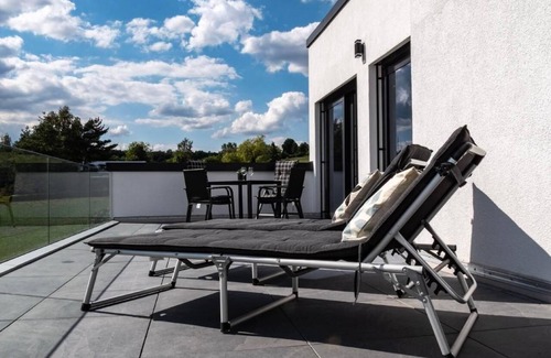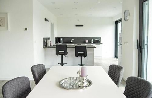 Discover our modern and spacious holiday home, set on a spacious plot on the quiet outskirts of the village. With two separate flats, each with their own entrances, our house offers the perfect balance between privacy and cosy togetherness. The flat on the upper floor, which is accessible via a separate external staircase, presents itself as your ideal holiday destination with a living space of approx. 100m² and a large balcony.