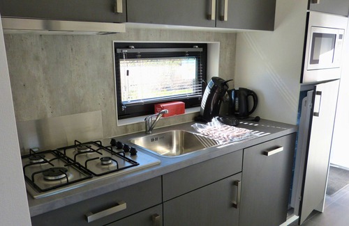The holiday home is quietly situated by a lake in the EuroParcs holiday park on the IJssel River, which features a marina and a beach. This cozy home accommodates up to 4 people and is modern and functionally furnished. It includes one bedroom with a double bed (1.60 x 2.00 m) and another bedroom suitable for children or additional guests with two single beds. Both bedrooms are equipped with insect screens. Adjacent is a bathroom with a shower.