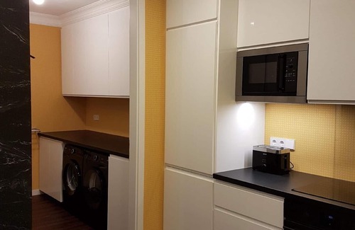 Kitchen: Coffee machine; Coffee pad machine; Dishwasher; Freezer; Freezer; Fridge; Induction stove; Microwave; Oven; Toaster; Water boiler