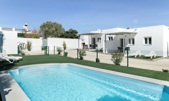 The accommodation is situated in a very quiet rural area, yet it is conveniently close to beaches and the town. Playa El Palmar and Los Caños de Meca are just a 15-minute drive away, while restaurants, pizzerias, and grocery stores are less than 5 minutes away.