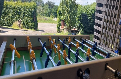recreation room, garage, carport, streamingservice, bar, steam shower, massage shower, patio, heating, terrace, terrace(roofed), garden(fenced), bicycle storage, garden furniture, sun loungers, BBQ(charcoal), parking, trampoline, deckchairs, parasol, table football, billiards, fitness equipment, children's bed, ironing board, party games, Surveillance camera