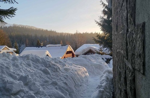 Holiday home at the forest, with veranda is located in Harrachov. Holiday home at the forest, with veranda provides accommodation, featuring Kitchen, Parking, Pet Friendly, among other amenities. This House features Kitchen, Parking, Pet Friendly, to make your stay a comfortable one.