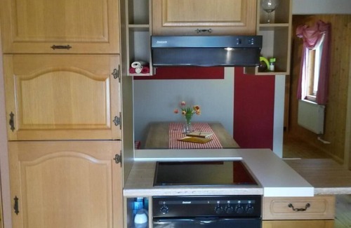 Inside, you will find a fully equipped eat-in kitchen with oven, microwave and fridge-freezer, which offers plenty of storage space for extensive cooking adventures. Meals can be enjoyed at the modern dining area, while a separate living room with a comfortable sofa invites you to relax and watch TV. A spiral wooden staircase leads to the bedroom in the converted attic, which has a double bed and space for additional overnight guests. For the little ones there is a separate youth bed and, on request, a travel cot with changing mat, a baby monitor and a high chair.