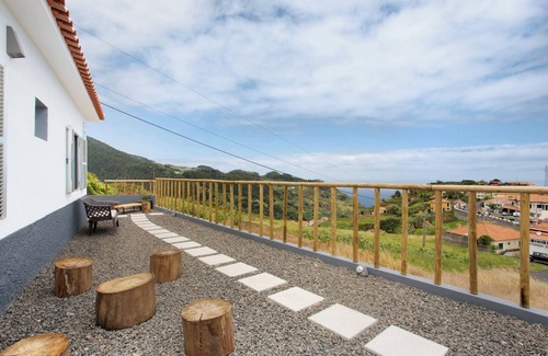The private outdoor area includes an open terrace with fantastic sea views and a balcony. The property is located near Levada trails and several tourist attractions, including the Fanal forest, known for its mist-shrouded trees. There is a café 50 metres away and a bus stop just a few steps from the house. The natural pools of Porto Moniz can be reached in about 20 minutes.
