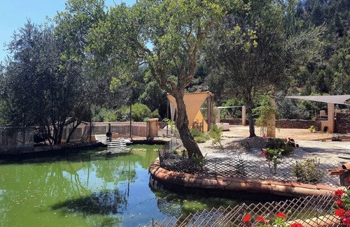 CASA LAGO is the perfect symbiosis of comfort and nature. This pearl is one of only two accommodations in the SELÃO DA EIRA VELHA Nature Paradise, which is located in the middle of a National Ecological Reserve in a river valley on the edge of the Serra de Monchique. This valley has an unmistakable atmosphere thanks to the harmonious coexistence of Alentejo forest with a wide variety of trees and shrubs in the gardens, fruit trees and organic horticulture, with chickens, geese and dozens of peacocks roaming freely in between. The waters of the stream, a pond and several lakes with swans and ducks give the space a special liveliness and freshness. In the night sky, the Milky Way looks like a celestial blanket.