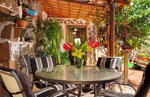 Located in the southeast of Gran Canaria, in Temisas and nestled in a beautiful mountain landscape, the welcoming holiday home Casa Los Pinos enchants guests with its natural stone façade. The 80 m² house consists of a living room, a well-equipped kitchen, 3 bedrooms and a bathroom, accommodating 4 people. You also have Wi-Fi, a washing machine and a television at your disposal. A covered terrace adorned with bougainvillea, a spacious patio, garden furniture and a barbecue invite you to spend relaxing hours with views of the lush surrounding vegetation. Thanks to its ideal location, the house is the perfect starting point for hiking excursions and day trips to the sea. A café and a restaurant are 1 km away (3 minutes by car). Gran Canaria Airport is a 32-minute drive away (21 km).