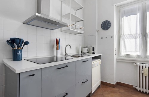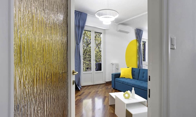 The holiday home Casa Mati' in Milano is the perfect accommodation for an stress-free holiday with your loved ones. The 95 m² property consists of a living room with a sofa bed for 2 people, a fully-equipped kitchen, 2 bedrooms and 1 bathroom and can therefore accommodate 6 people. Additional amenities include high-speed Wi-Fi (suitable for video calls) with a dedicated workspace for home office, a TV, air conditioning as well as a washing machine. The building in which the accommodation is located has an elevator. This vacation rental features a small private balcony.