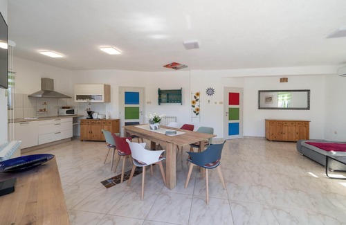 Discover the tranquil retreat that is Villa Tara, nestled in the picturesque surroundings of Juricani in Istria. This charming holiday house is an ideal haven for those seeking a peaceful getaway, yet it remains close enough to explore the vibrant city of Umag. Perfect for families and groups of up to 10 persons, Villa Tara promises a relaxing stay with all the comforts of home enveloped in the beauty of nature.