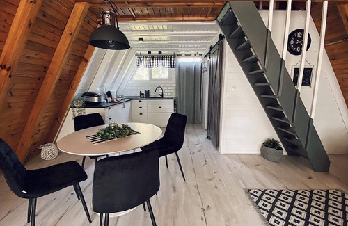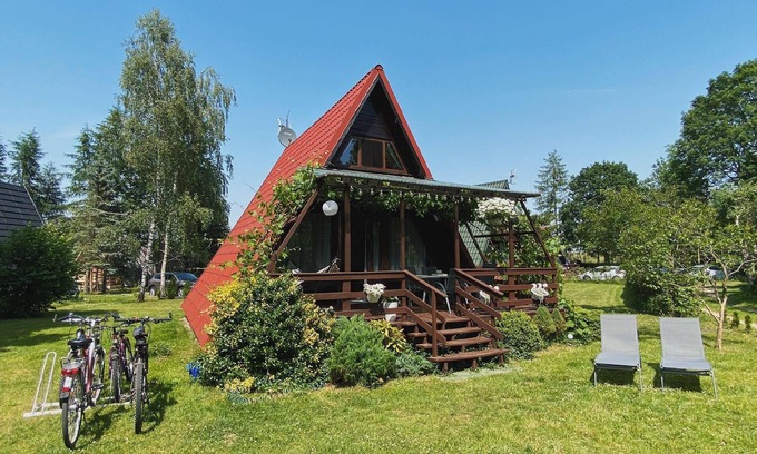Lovely holiday home with covered terrace and garden furniture. Parking in front of the house. Large table, chairs, barbecue. Additional sun loungers and a portable hammock. The transparent roof over the terrace protects from rain and the grapes growing under the roof from excessive sun. On the ground floor: 1. living room with large comfortable corner sofa. LED TV. Polish digital and international TV channels. HDMI cable - possibility to connect laptop etc. Wi-Fi router 2. Fully equipped kitchen. Microwave oven, induction cooker with two fields, multicooker. Fridge with freezer, kettle, sandwich maker, toaster, coffee machine. Dishes, cutlery etc. 3 Bathroom with shower + WC. Hot water from electric boiler. Hairdryer, iron, small heater. Upstairs: 1. Enclosed bedroom (double bed 160 x 200 cm) 2. Open bedroom (two single beds 120 x 200 cm and 90 x 200 cm). The area is fenced. Distance from the lake and the beach approx.1 km. In our opinion this is an advantage, because you can find a moment of peace when the beach is too noisy, and you can reach the beach by bike in a few minutes. Beautiful Lake Insko, famous for its exceptionally clear water. The area is part of the Ińsko Landscape Park. Swimming equipment available for hire. Smoked and fresh fish (we recommend delicious whitefish) at the lake within 2 km. Biedronka supermarket at 1 km and Dino at 2 km. It is here that you can feel how great it is not to rush anywhere :)