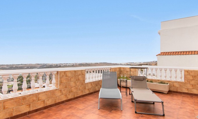 The holiday penthouse in Las Palmas is the ideal accommodation for a relaxing vacation with views of the Atlantic. The 90 m² property consists of a living room, a well-equipped kitchen, 2 bedrooms and 1 bathroom, so it can accommodate up to 4 people. Additional amenities include high-speed Wi-Fi suitable for video calls, a dedicated workspace for home office, and television. This accommodation does not have air conditioning. The property features a private outdoor area, including an open terrace, a covered terrace, and a barbecue.