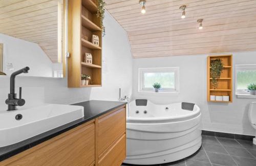 23 miles from Svendborg Train Station in Nyby, Holiday Home Erle - 830m from the sea by Interhome provides accommodations with access to a sauna. This property offers access to a terrace, free private parking, and free Wifi. The vacation home includes 5 bedrooms, 2 bathrooms with a shower, a seating area, and a fully equipped kitchen with a dishwasher. A TV is provided. The accommodation has a fireplace. Sønderborg Airport is 64 miles away.
