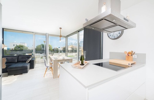 With views of the Balearic Sea, the holiday home Es Mollet in Son Serra de Marina is perfect for a relaxing vacation. The 100 m² property consists of a living room, a well-equipped kitchen, 3 bedrooms and 2 bathrooms, accommodating up to 6 people. Additional amenities include Wi-Fi, a fan and a washing machine. A cot and a high chair are also available. The accommodation does not have air conditioning in all rooms; there is only one air conditioning unit located between the hallway of the living-dining area and the bedrooms.