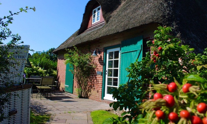 The lovingly designed part of the house "barn" is located in Stianbrag, with stunning views over the Borgsumer Marschwiesen, in a quiet side street with idyllic thatched houses. Your vacation home extends over two floors and is located in the "farmhouse on the Lembecksburg", a typical thatched-roof Frisian house with a large garden. A private small garden with terrace and beach chair, and garden furniture are available here. A very comfortable and modern holiday accommodation. The house was completely renovated and modernized in 2014.