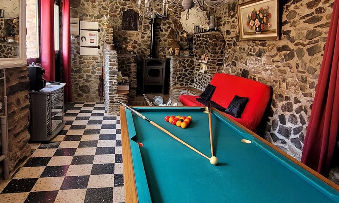 The holiday home Gîte Bellevue in Nohèdes is the ideal accommodation for a relaxing holiday with a mountain view. The 50 m² property consists of a living room, a fully-equipped kitchen, 1 bedroom and 1 bathroom as well as an additional toilet and can therefore accommodate 2 people. Additional amenities include high-speed Wi-Fi (suitable for video calls) with a dedicated workspace for home office, a TV, air conditioning, a fan as well as a washing machine. In addition, a pool table is available for your use. A baby cot and a high chair are also available.