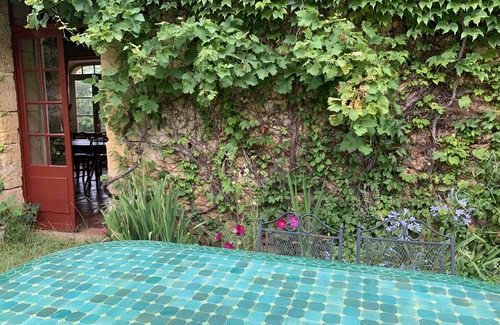The fifth bedroom is located in a quiet outbuilding, accessible by crossing the courtyard. Shaded parking is available in the driveway.