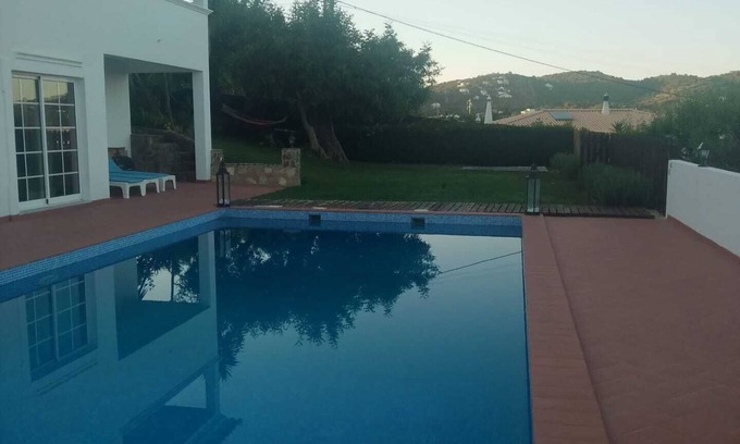 Villa in a quiet and calm area overlooking the sea and mountains, 15 km from Faro airport. The Villa has 3 bedrooms and 2 bathrooms, fully equipped kitchen with oven, microwave, electric stove, dishwasher, coffee maker, refrigerator, and first aid equipment. It also has 2 living rooms, television, fireplace, terrace, barbeque, private pool, garden, private parking, laundry. And free internet access. Better combination of privacy and comfort. Where you can enjoy a relaxing holiday with family and / or friends. A walk in the countryside, a dip in the pool, having a barbecue while the children play in the garden or jump on the trampoline.