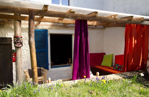 The garden is completely fenced and has a covered terrace with a charcoal barbecue. There is a sandpit for children. You are also welcome to linger in our vegetable garden and orchard.