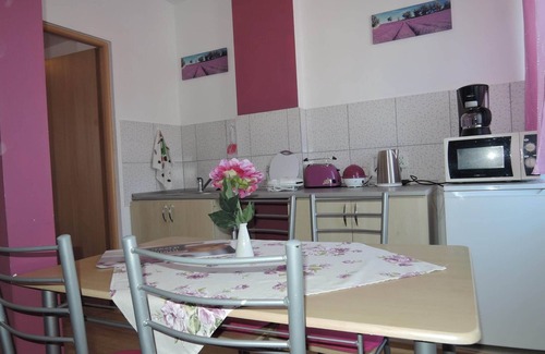 Layout: On the 2nd floor: (open kitchen(electric kettle, boiling water tap, toaster, espresso machine, microwave, fridge), Living/bed room(double sofa bed, dining table), bedroom(single bed, single bed, TV(german television channels)), bathroom(shower, washbasin, toilet)) Internet access, terrace(shared with other guests, 25 m2), parking