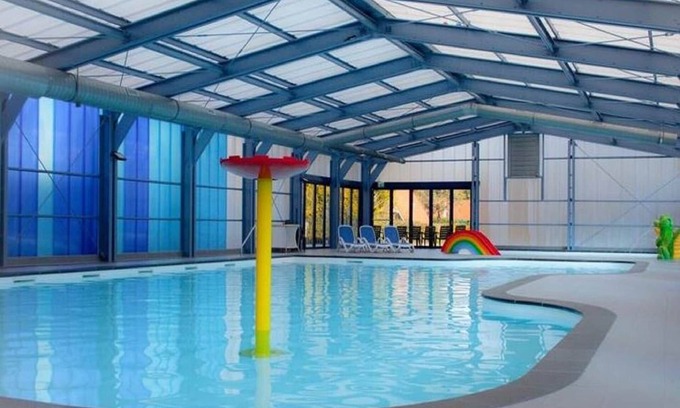 The spacious sunny garden ensures privacy, while the park offers a wide range of facilities including indoor and outdoor swimming pools, an indoor play area (Mad Monkey Jungle), Escape Room, bowling alley, midget golf, tennis court, playground, petting zoo, animation team, restaurant, snack bar, hair salon, and a fishing pond. Seasonal activities include an indoor skating rink in winter and a roller rink in summer. Equipment can be rented at the reception.