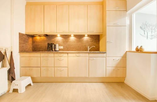 On the ground floor, there is a spacious sitting room with a dining table and separate kitchen with everything you need for a nice meal. Besides the fact that you can sit here in isolation, there is a separate recreation room, where an extra bed can be placed.