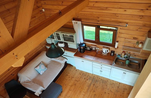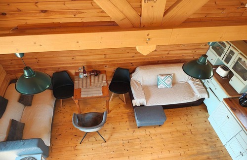 Layout: Ground floor: (open kitchen(electric kettle, boiling water tap, toaster, cooker(2 ring stoves, induction), espresso machine, fridge-freezer), Living/bed room(double sofa bed, TV, dining table, stove, seating area), bedroom(small double bed), bathroom(shower, washbasin, toilet), veranda) On the 1st floor: (Gallery bedroom(single bed, single bed)) terrace, garden(fenced, landscaped garden), garden furniture, BBQ
