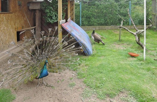 Layout: Ground floor: (Kitchen(hob(2 ring stoves, gas), electric kettle, coffee machine, microwave, fridge-freezer), Living/bed room(single bed, single bed, single sofa bed, TV(satellite, german television channels)), bedroom(double bed, TV(satellite, german television channels)), bathroom(shower, toilet), bathroom(shower, toilet)) seating area, grill, bicycle storage, garden furniture, parking, trampoline, parasol, sand pit, outdoor fireplace, Swing set