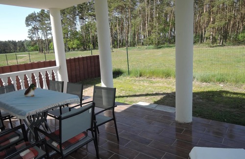 Detached holiday home located in the picturesque Nowe Warpno. Here you can spend relaxing holidays in the fresh air, because a covered terrace, a balcony and a barbecue area invite you to spend hours together. When the weather is cooler or in the evening, make yourself comfortable on the walk to Harbour and make plans for the next day of your vacation. Nowe Warpno is a tranquil small town in West Pomerania. Peace seekers and nature lovers get their money's worth in the pristine nature. Activities nearby: It is only a few minutes from your holiday home to City Center. You can fish in many places around the harbour and there is also a fish restaurants. You can also explore the natural surroundings on long bike tours. Mobility: Not suitable for people with limited mobility. Additional costs payable on site: Deposit: 200 EUR. Tourist tax: 0.80 EUR/p.p./day