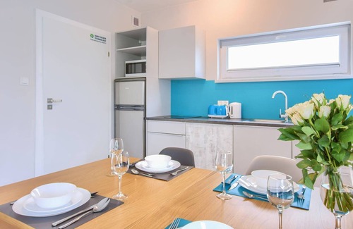 The family-friendly holiday complex was newly built in 2018 and has 15 modern holiday homes. The complex offers you a communal outdoor pool and a children's pool as well as many great play and sports facilities. On the large 5000 square meter site, of which 60 square meters are available for your private use, there is also a beautiful sun terrace with deck chairs. Rogowo is a wonderful seaside resort on the Polish Baltic Sea coast and offers its holidaymakers beautiful, wide sandy beaches. Go to the boat or bike rental and explore the area in your own way. You can also relax and fish on Lake Resko or do water sports.
