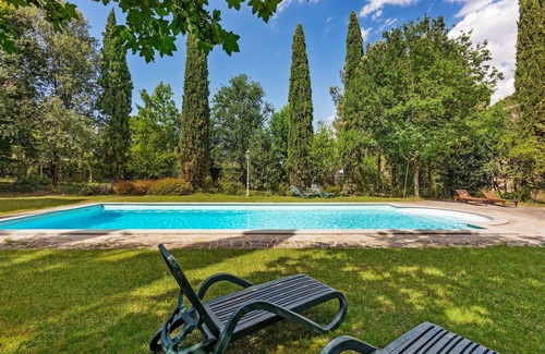 Are you longing for a holiday in calm and peaceful surroundings, surrounded by mountains and greenery? This majestic holiday home in Umbria is well furnished with an outdoor swimming pool surrounded by sun loungers. This place is perfect for a holiday with friends or family. The air-conditioned holiday home has a TV to pass the time, a well-equipped kitchen to cook delicious meals. There is a private patio overlooking the view where you can dine. The children can spend time playing on the swings in the garden.