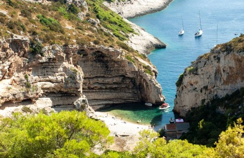 The island of Vis is located far off Split in the Adriatic Sea and can be reached by car ferry or catamaran from Split in about 2 hours. Due to the isolated situation and the ban on foreigners entering Yugoslavia, Vis has remained very original. Tourism began to develop here only in the early 90s of the last century. The island is suitable for those who seek peace and relaxation far away from tourist crowds. The island is also known for its fishing and viticulture. At the time of Austria-Hungary, the whole empire was supplied with wine by Vis. Even today, vineyards dominate the landscape. In addition to the beautiful larger towns of Vis and Komiza with their Mediterranean flair, the picturesque villages in the interior as well as the many only accessible on foot deep-cut sandy bays to explore.
