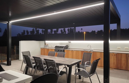 The accommodation stands out for its private outdoor area, featuring a heated pool, hot tub, garden, open and covered terrace, gas barbecue and outdoor shower. Parking is available on the property, as well as a garage space and free street parking. Pets are not allowed. The Wi-Fi is suitable for video calls. The property is step-free and has wide doors. Parties are not allowed, but events can be held upon request. Babysitting service is available for an extra fee. The building has an elevator. Beach and pool towels are provided, and there is parking for motorbikes and bicycles. You can book additional services such as car rental, transfers, private chef, fully stocked fridge, water, babysitter and excursions, all available for an extra fee. A security deposit will be requested, which will be refunded via the same payment method used.
