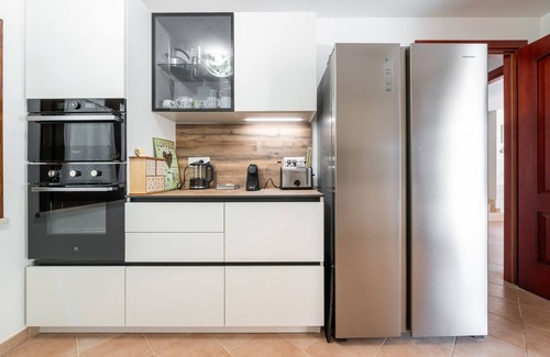 The kitchen is large and spacious equipped with water potabilizer, dishwasher, toaster, kettle, microwave oven, washing machine.